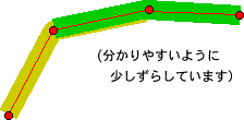 8. 線の描画初期のバージョンでは、線の描画ではOSの直線描画ルーチンを使用していました。1ドット幅の線ならば問題なかったのですが、太い線では問題がありました。OSの直線描画では始点・終点・太さを指定(その他にも色とか描画パターンとかも)します。その際、直線は長方形として描画されます。曲線は一連の座標による直線を結んで描画するため、これらの直線をOSの直線描画の長方形で描画すると、ギシャギシャになってしまうのです。 ギシャギシャな描線 これを回避するために、複数の座標を直線で繋ぐOSの描画関数を使用しました。この関数で(現在の座標,1つ前の座標,2つ前の座標)を描画すると,繋ぎ目は綺麗に埋めて描画されるため滑らかな曲線となります。 しばらくはこの方法で描画していたのですが、ペンのスタイルということで、ある間引いたパターンでの線描画をサポートす機能を追加していると、描画速度が気になりはじめました。仮想画面をまずクリアし、OSの線描画関数を用いて間引き無しで描画し、その描画結果をスキャンして描画されたピクセルであればスタイルに応じて実画面に描画する、という処理でしたが、やはりオーバーヘッドが大きかったようです。 改善した描線 現在は、スタイルを加味したペンの形状で点を描画(太ペンだと円を描画)するルーチンを連続して呼び出す方法にしています。これはこれで無駄が多いですが、OSの直線描画機能を使うよりも高速なようです。 改善した描線その2 |