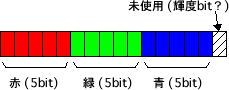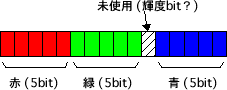 どうやら、Microsoftの初期の開発環境では、下側の値が使われていたそうです。さすがMS、なんだかなぁですね。 16bpp(65536色)では、RGBの値を16ビットで表すことになります。RGBそれぞれを5ビットとすると1ビット余りますが、この1ビットとRGBの5ビット(x3)をどのように組み合わせて16ビットにするかが、アプリケーションによってまちまちなのです。 Pocket IE のパレット情報 あるWin95/NT用グラフィックツールのパレット情報 JINZO Viewerでは仕方なくPocketIEに合わせていますが、どれが正しいのでしょう...? | ||||||||||||||||